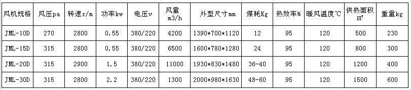 水暖溫室禽舍加溫機(jī)主機(jī)技術(shù)數(shù)據(jù):